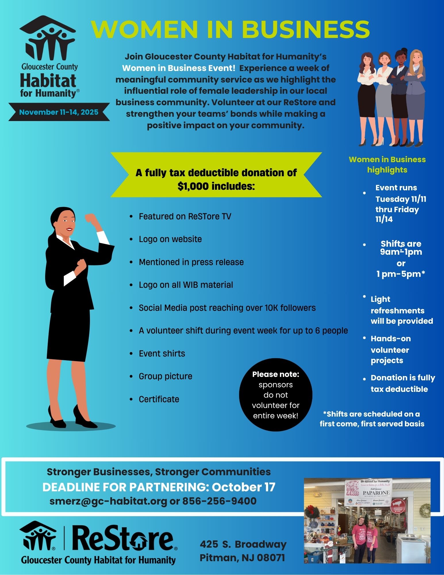 Event Details Join Gloucester County Habitat for Humanity's Women in Business Event! Experience a week of meaningful community service as we highlight the influential role of female leadership in our local business community. Volunteer at our ReStore and strengthen…